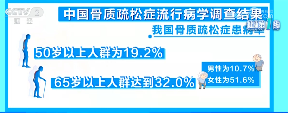 复旦大学附属华东医院骨质疏松科主任医师洪维称★◈◈✿:“大概在50岁以上的女性★◈◈✿,三个人当中就有一个有骨质疏松★◈◈✿。那么到65岁★◈◈✿,这个比例可以超过50%★◈◈✿,也就是说两个阿姨妈妈当中就有一个人患有骨质疏松★◈◈✿。”